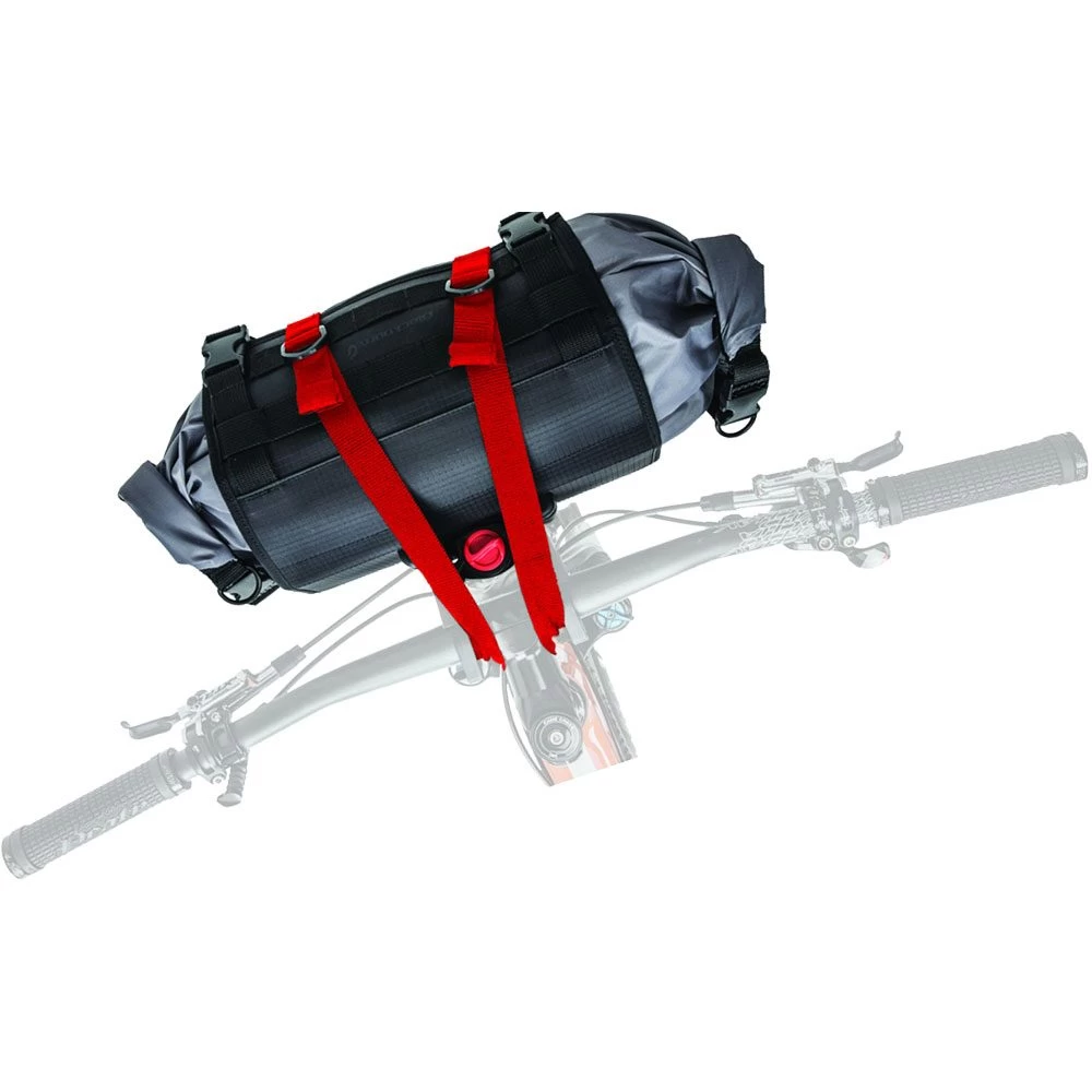 Versatile handlebar harness and waterproof stuff bag. Perfect for overnight rides and can easily carry sleeping bags, tents, clothing nearly anything you need.