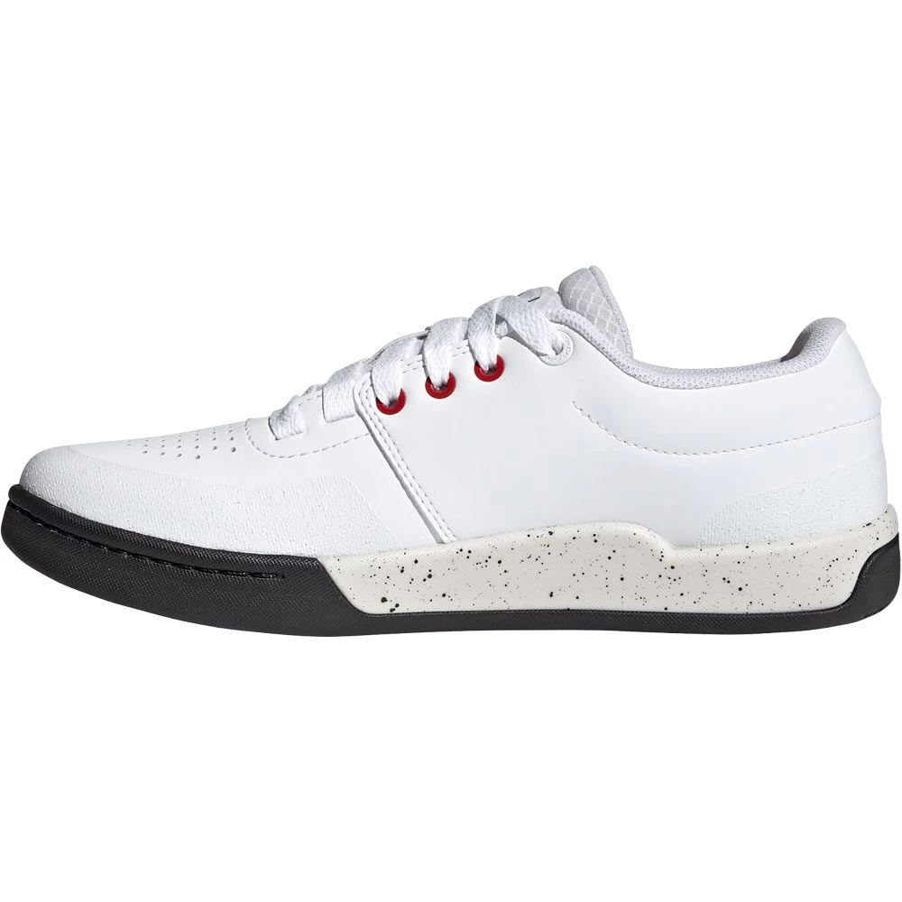 Flat pedal mountain bike shoes with an impact resistant toe box.