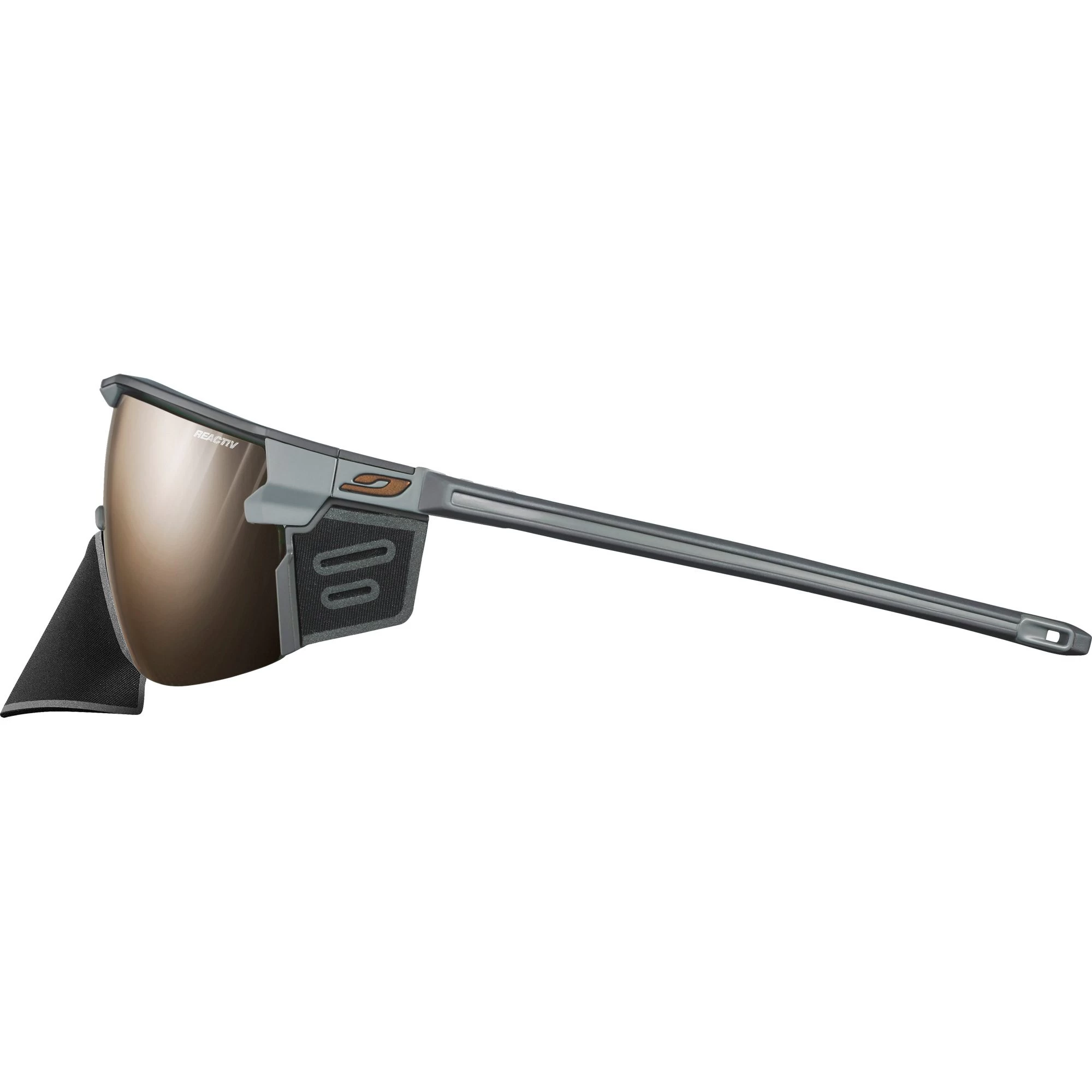 the valley to reaching the highest peaks. CustomFIT temples with precise and long-lasting adjustment, combined with a Grip Tech structure, produce a tailor-made grip and a lightweight spec. Fitted with a 3D Nose, the glasses offer flawless hold when you’re working flat out, with or without a helmet. A panoramic lens creates an energetic style while giving you protection and visual comfort thanks to REACTIV Photochromic lenses.