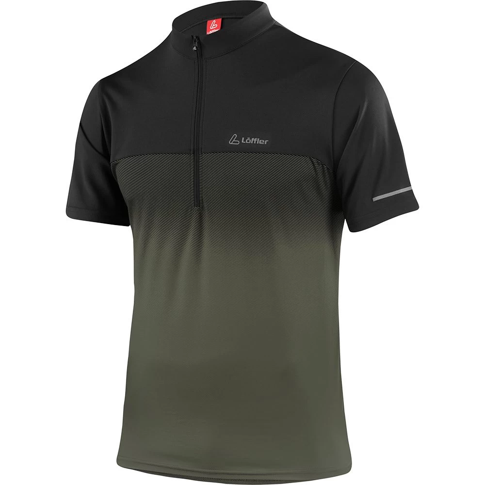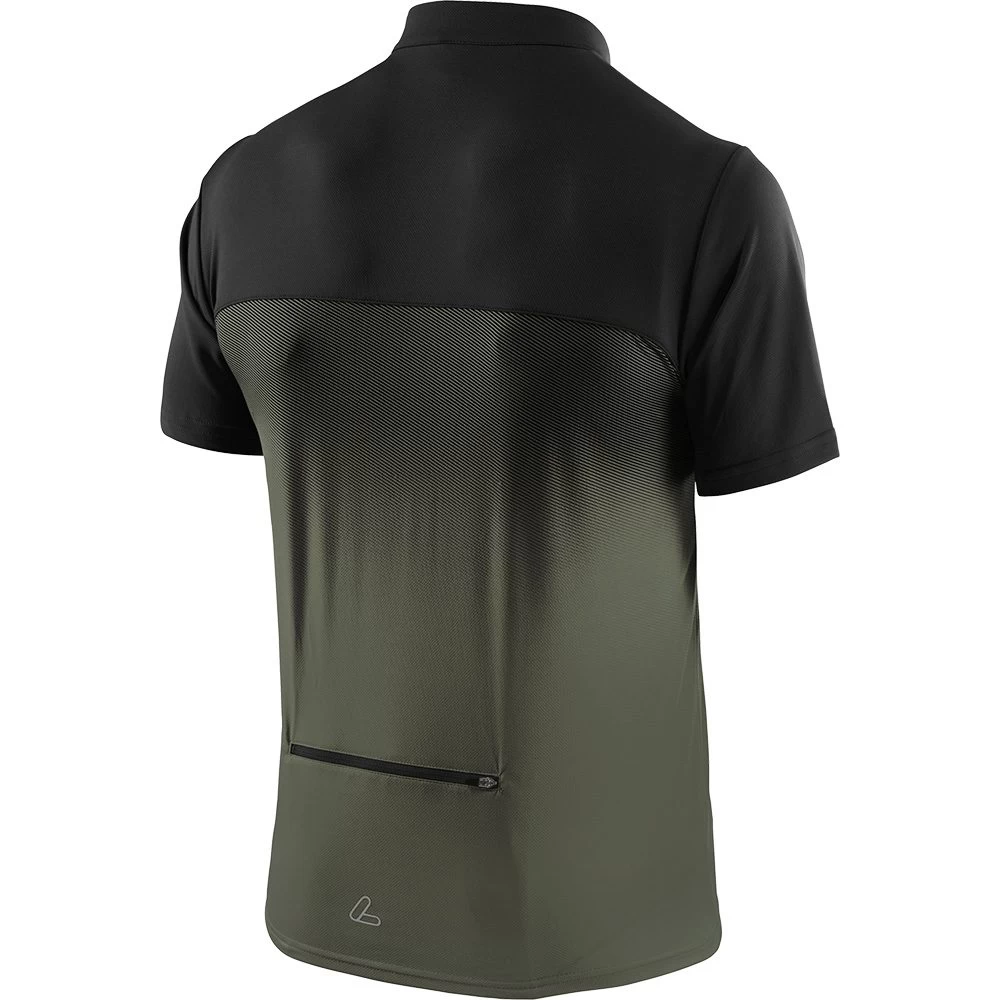 The jersey is breathable and partially printed. It has a stand-up collar, half zip, and a prectical zip back pocket.