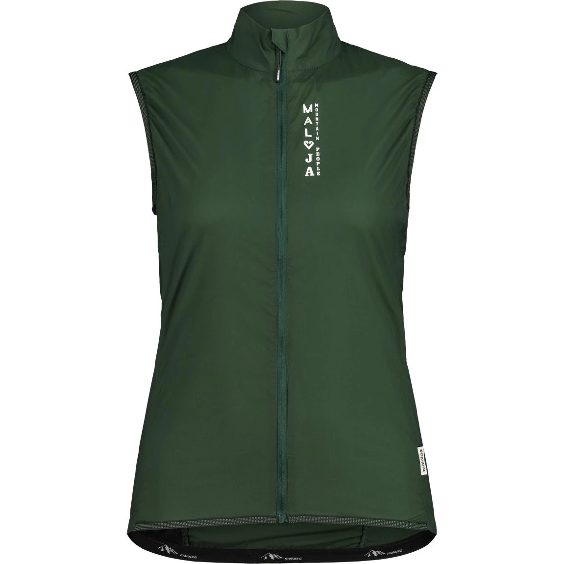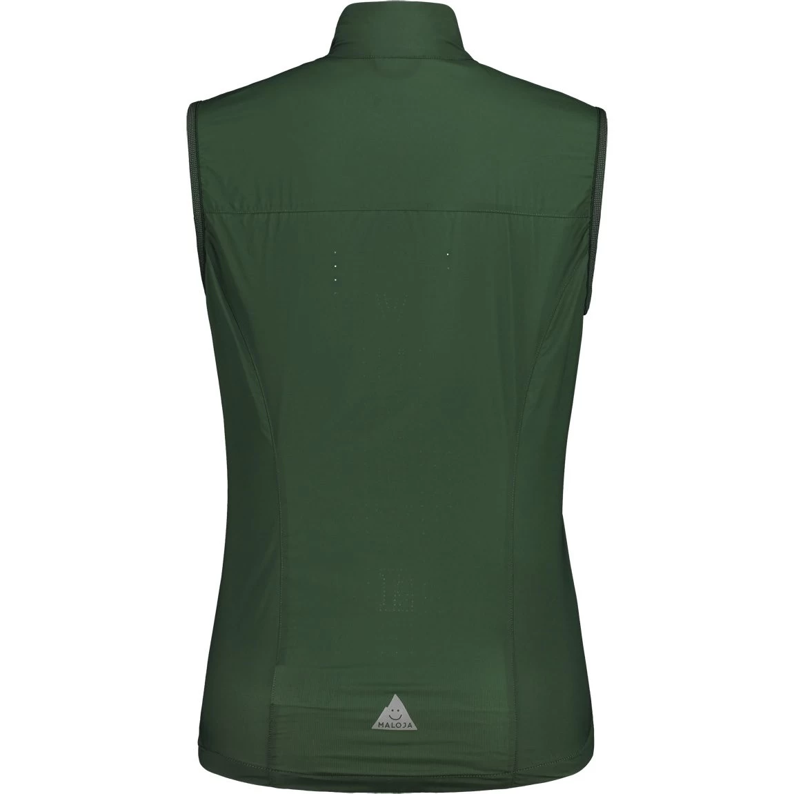 The SeisM. vest is windproof and equipped with an environmentally friendly, water-repellent finish, the perforated VELO LOVE detail made of finely lasered ventilation holes on the back ensures good ventilation. The bike vest is made of a thin, stretchy material, is comfortable to wear and can be packed very small into the integrated pocket. Simple design with vertical Maloja lettering on the chest and reflective Happy Mountain logo on the back.
