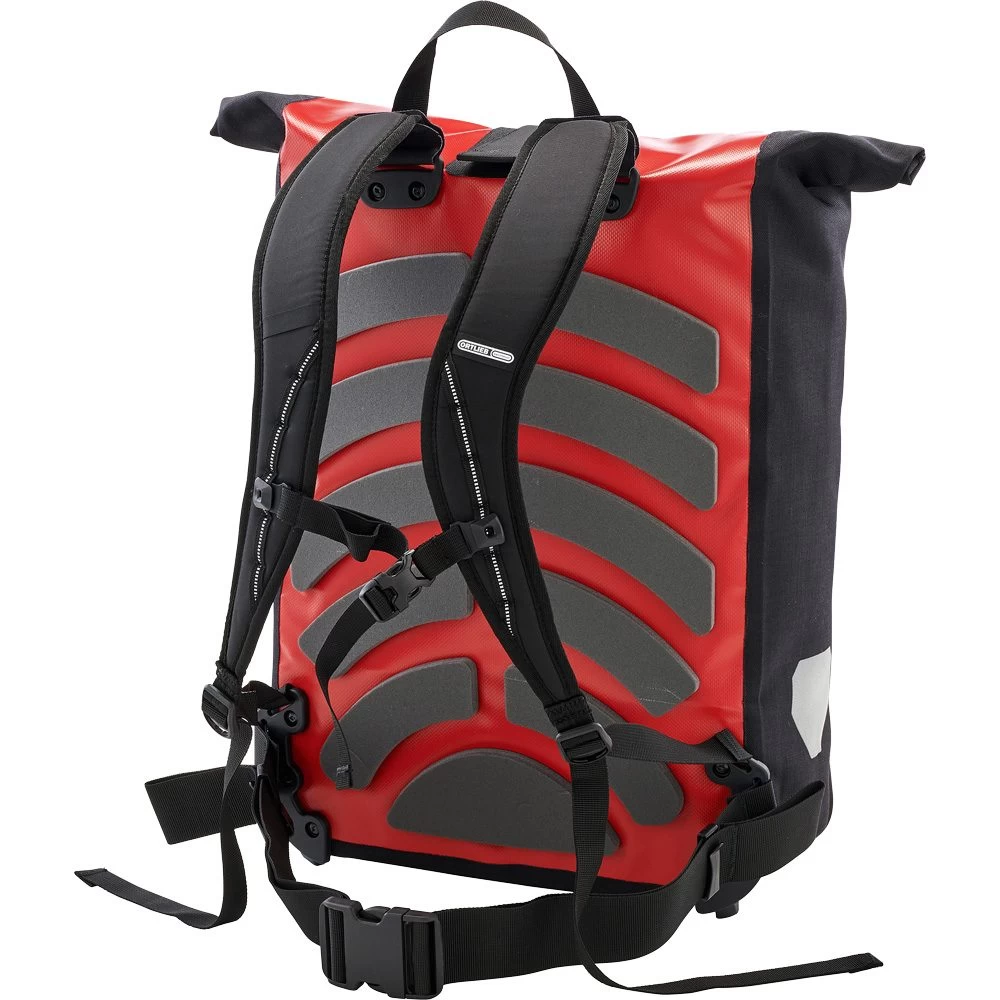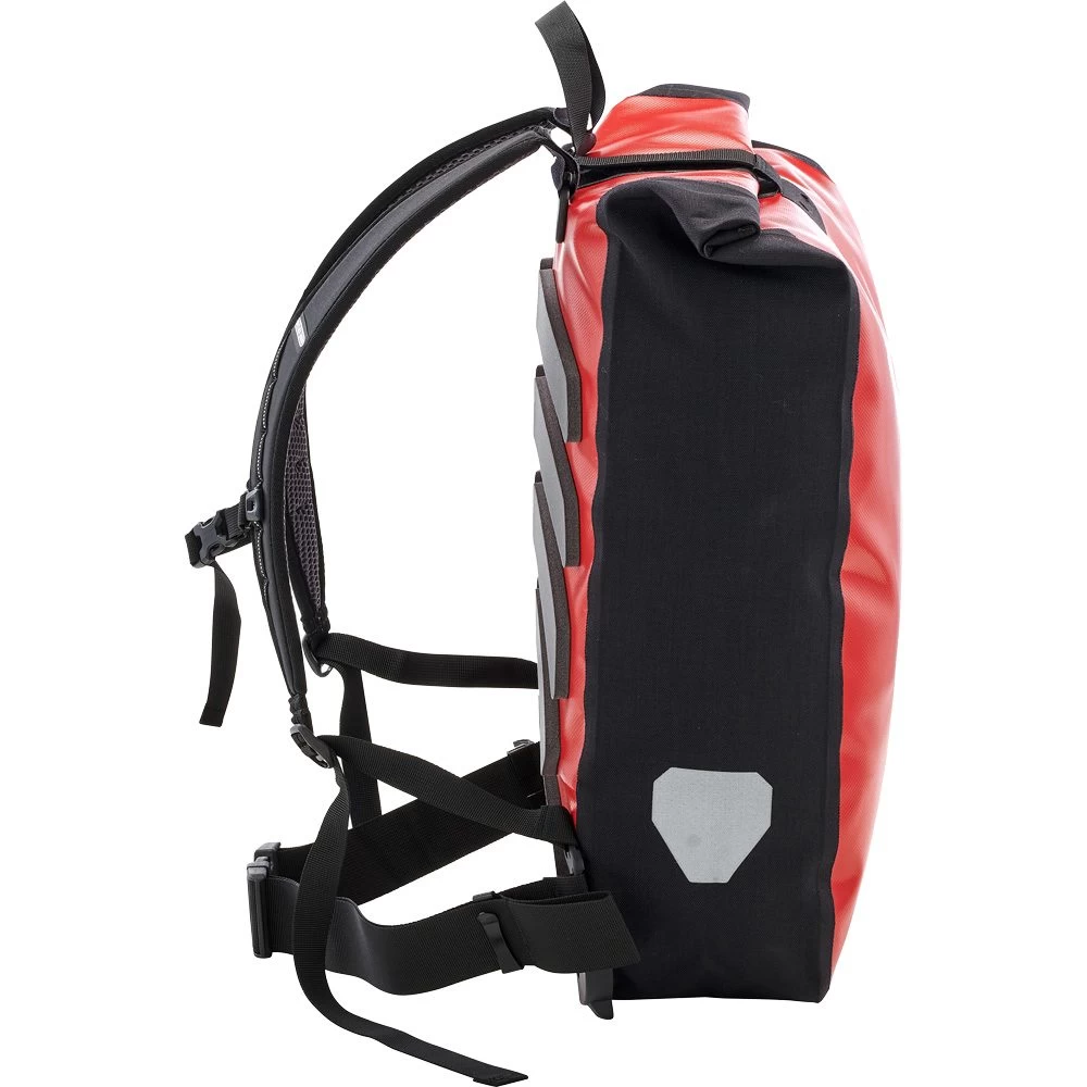Durable and smart enough for the big-city jungle, the Messenger-Bag enjoys an excellent reputation among bike couriers and frequent riders throughout the world. Some of the bag’s cherished qualities include a slender, functional design, waterproof tarpaulin material that withstands any inclement weather, and a convenient roll closure that enables a flexible packing height and a 39-liter payload. The rear-ventilated foam back and the chest and hip straps enable a comfortable, close fit that is especially crucial when sprinting and braking quickly in the city. The contoured carrier straps with reflective stripes and the side reflectors offer enhanced detectability, especially in bad weather and at night.