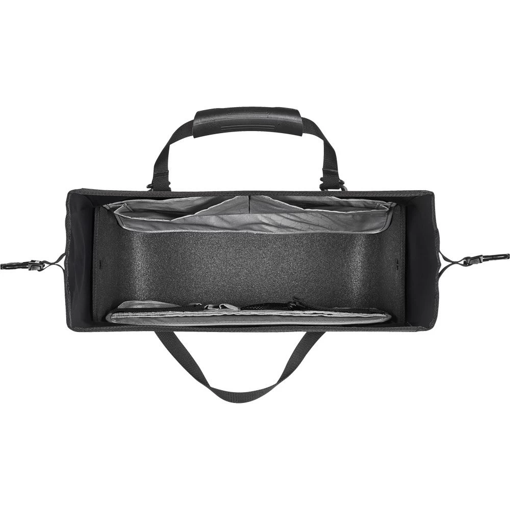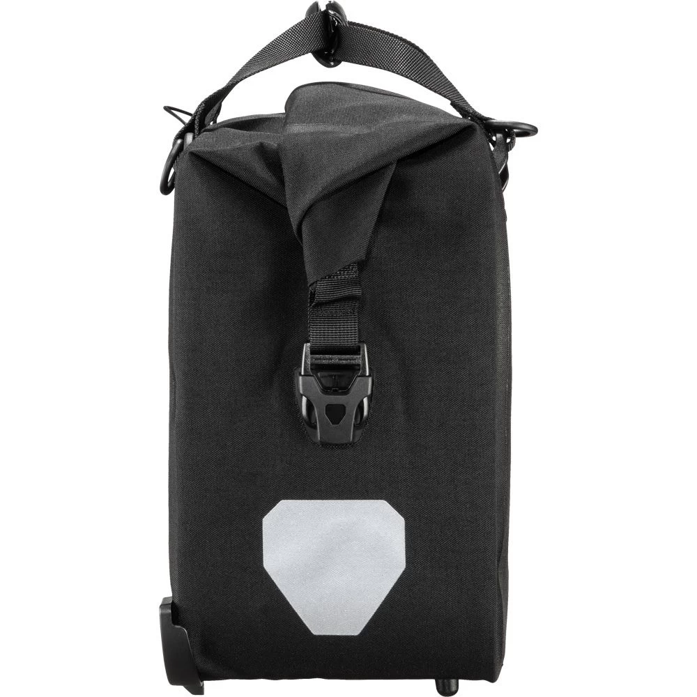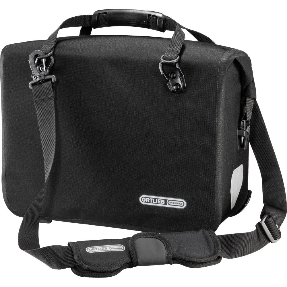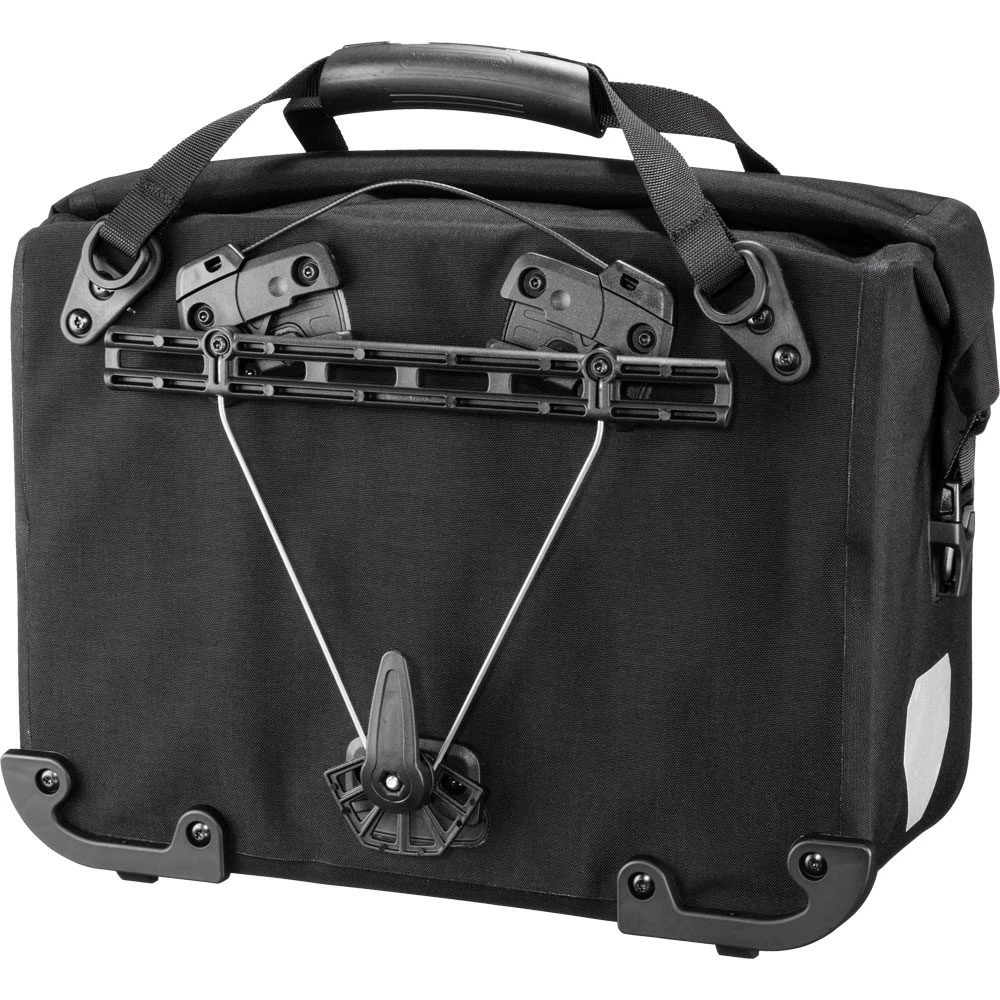 The Office-Bag QL3.1 is a spacious briefcase with the bonus of having an innovative rack mounting, QuickLock3.1. It allows even more comfortable and quicker mounting of the Office-Bag. Simply insert into the lower mounting element, move towards the rack and slide into the top hooks by a lateral motion from left or right. The hooks lock automatically and disengage by lifting the bag. The QL3.1 mounting set features three attachment points and can be mounted to any standard rack. Height and angle are individually adjustable. The mounting components on the bag‘s rear side are flat leaving the bag‘s back uncluttered, ideal for use in daily life and carrying it over your shoulder. Office-Bag QL3.1 features a waterproof and dustproof roll closure for safe transport of files, laptop, paperwork, etc. Two internal organizers help storing and organizing items inside. With 21 L volume (size L) the briefcase is suitable for A4 documents and a laptop plus all other little items required for a day at work or school. Base feet and edge protection safe the bag at the bottom and at lower corners respectively. The ergonomic design of the removable shoulder strap prevents sliding of the bag off your shoulder. Two large reflectors provide additional safety in dawn and at night.