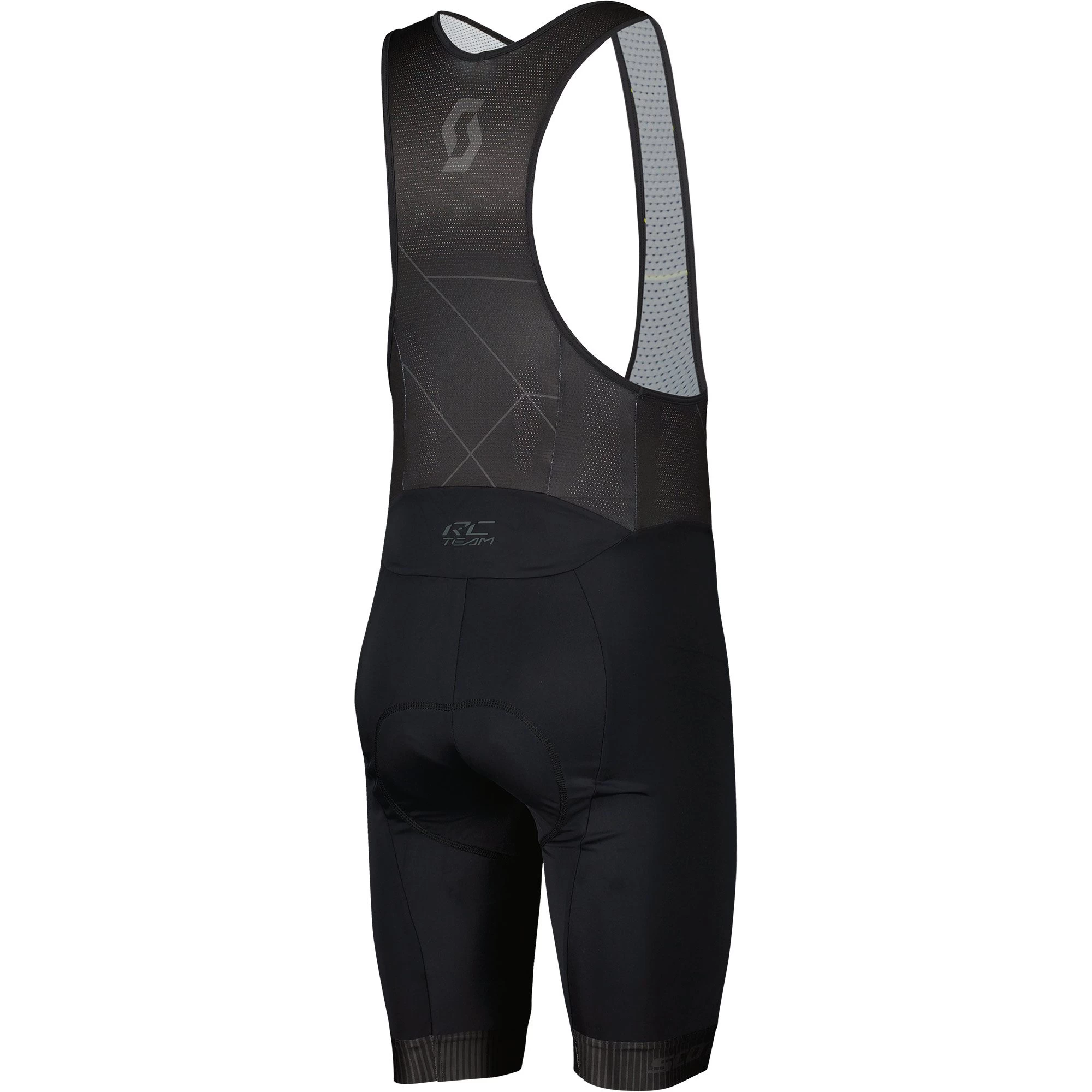 The SCOTT RC Team ++ bibshorts have performance padding and mesh suspenders for the ventilation and comfort you need on race days.