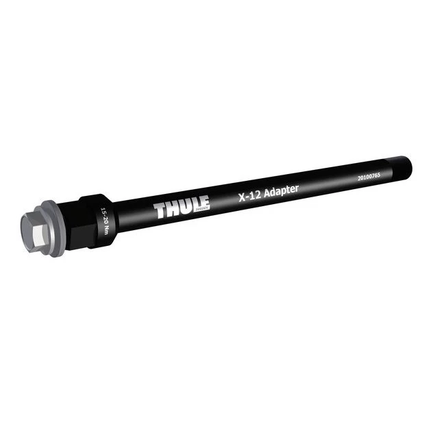 Thru axle adapter allows Thule child carriers to be compatible with bikes with 12 mm Syntace X-12 rear axle.